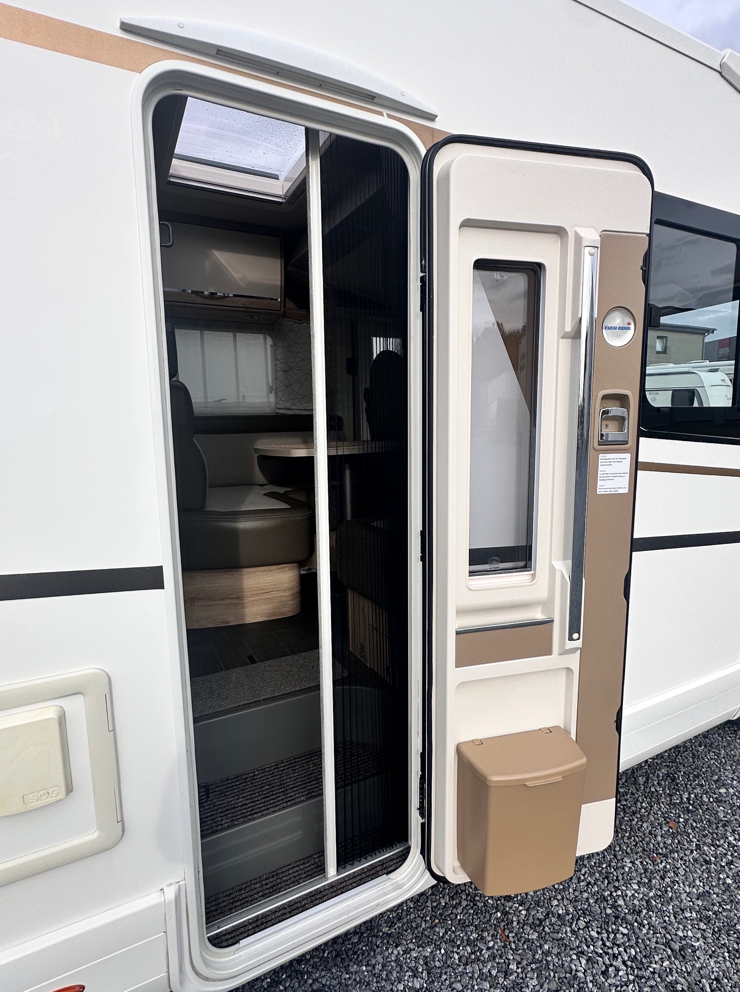 Komfort Aufbautür, Comfort Paket, Heki, Mückengitter für Aufbautür, Prestige Paket, 150 PS Motor, Schaltgetriebe, Toilettenentlüftung (SOG), 2te Gel-Batterie 80 Ah, Lautsprecher (2) im Aufbau, Sat-Anlage im Aufbau, Flachbildschirm Wandhalterung